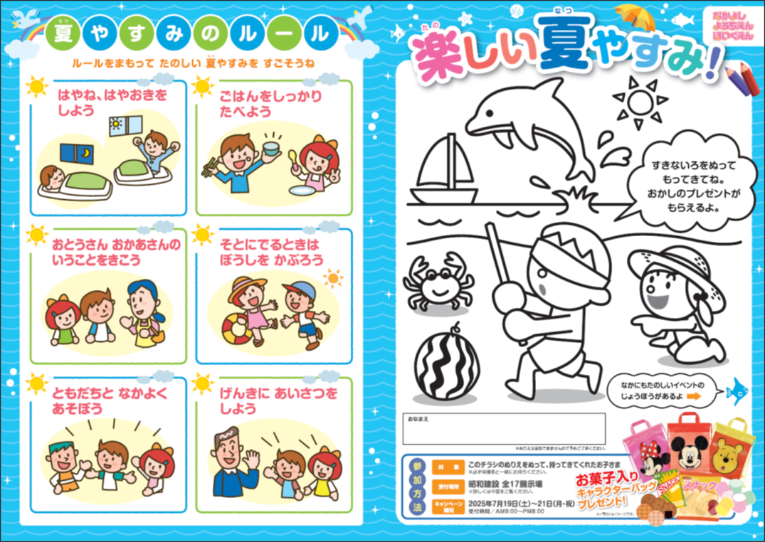 →ぬりえ持参、お菓子入りキャラクターバッグプレゼント